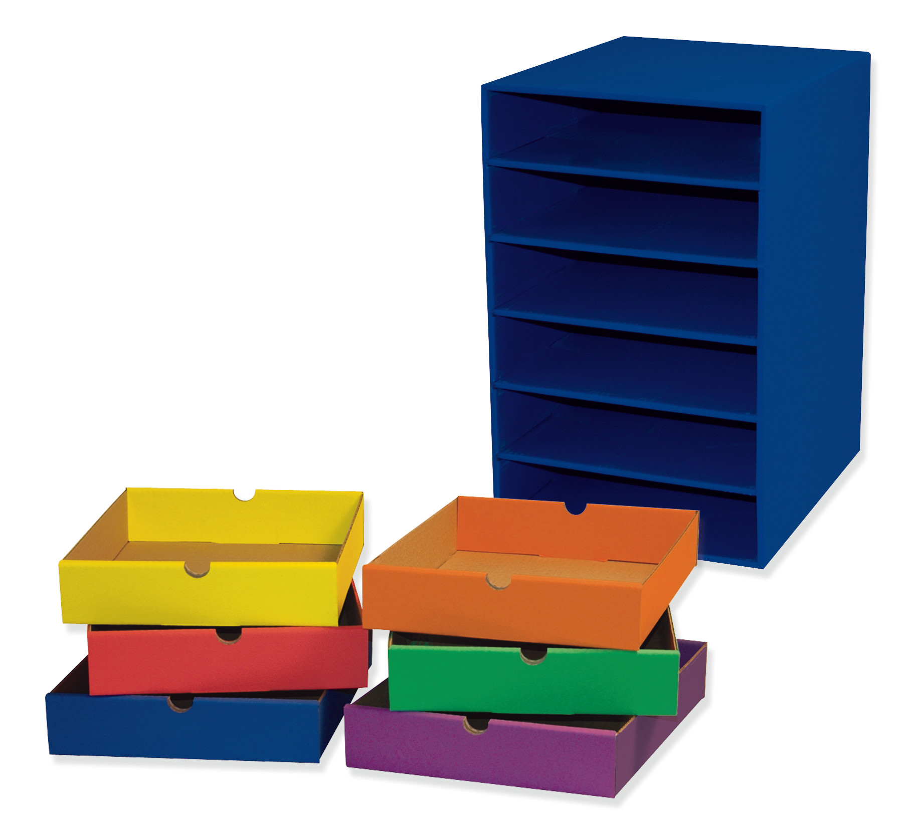 Add these assorted colored drawers to the 6-shelf organiser to store art and classroom supplies.
